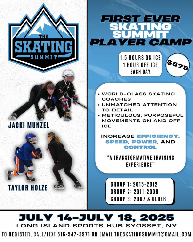 From July 14β18, 2025, the Skating Summit will take over the Long Island Sports Hub in Syosset, NY, delivering a five-day development experience that blends elite power skating with progressive off-ice training. This is not your typical hockey camp.